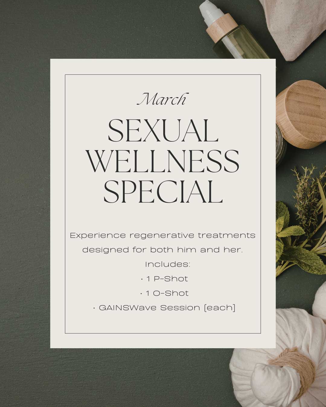 This month, we’re offering a comprehensive Him & Her package designed to support performance, confidence, and intimacy.